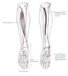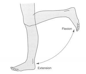 Dorsiflexion: toes move towards lower leg / flexion of ankle (pull toes up).