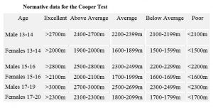 • Scoring: an estimation of VO2max can be calculated from the test results, using this A rating can be determined using the VO2max norms.